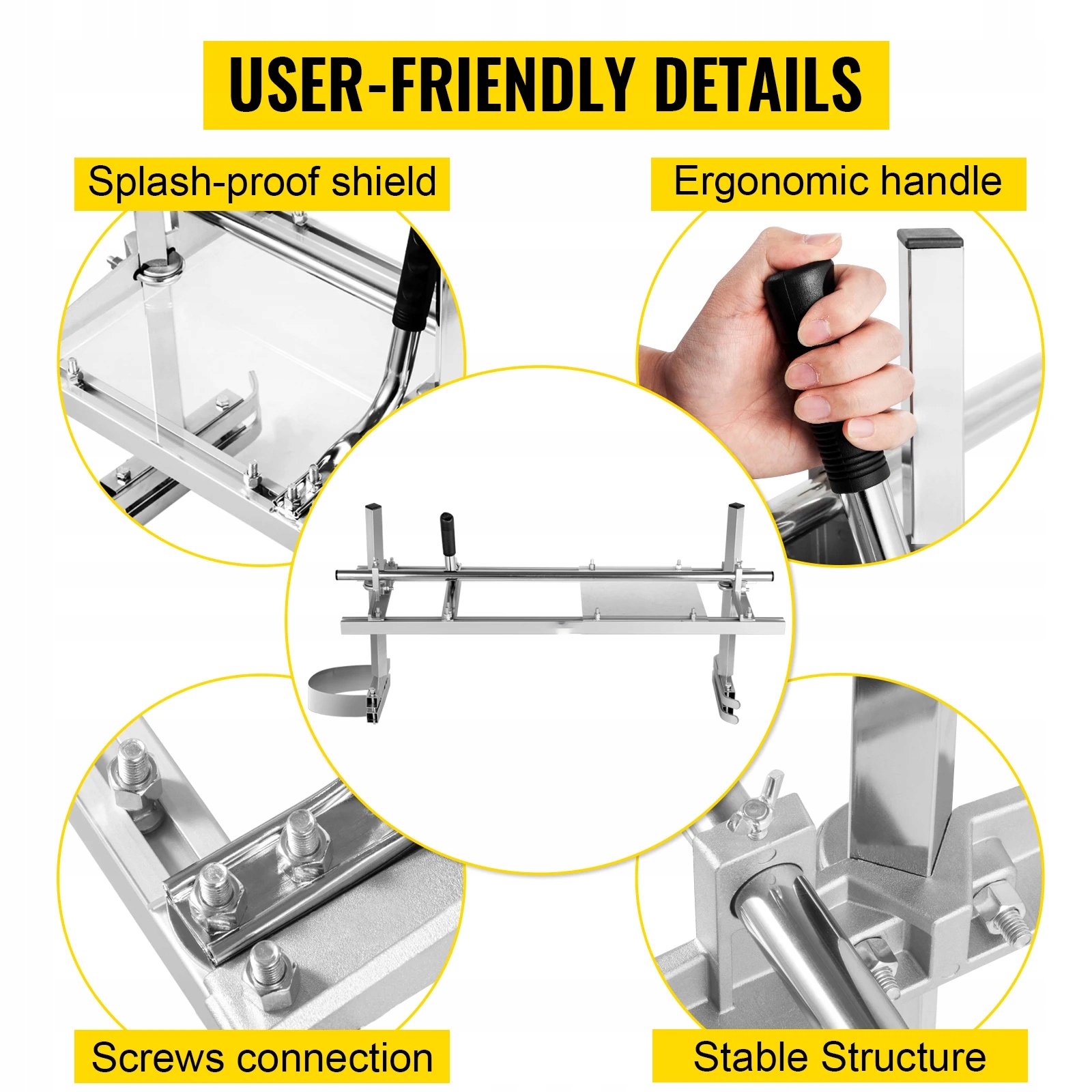 Ланцюговий млин оснащено прозорим диском, захищеним від бризок, і ручкою, що не ковзає, для комфортного використання. А гвинти надійно з’єднані, щоб забезпечити надійну структуру.