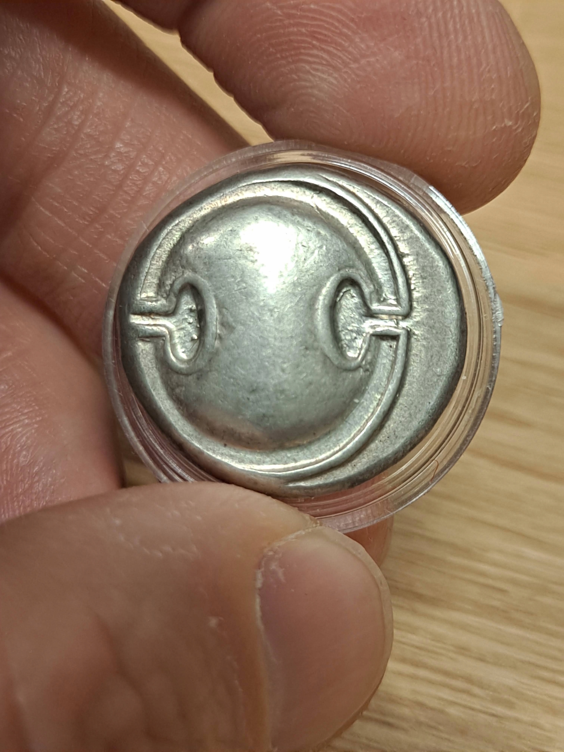 Св. 2, чудово збережений, глянцевий екземпляр, дуже гарний, гладкий фон, пластичний рельєф. Один із знакових грецьких статерів, тут у більш рідкісному варіанті «Каллі».