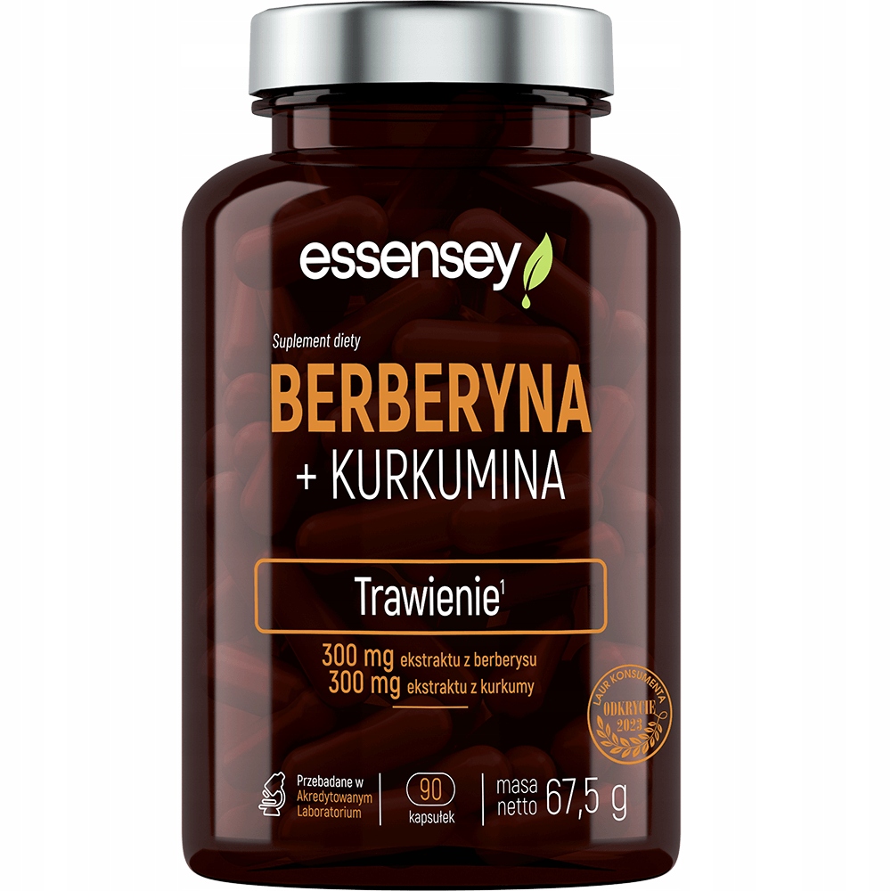 Дієтична добавка Ессенсі Берберін+Куркумін містить екстракт Barberry, який допомагає підтримувати правильний рівень глюкози в крові та екстракту куркуми, що сприяє перетравленню підтримки. Берберін і куркумін