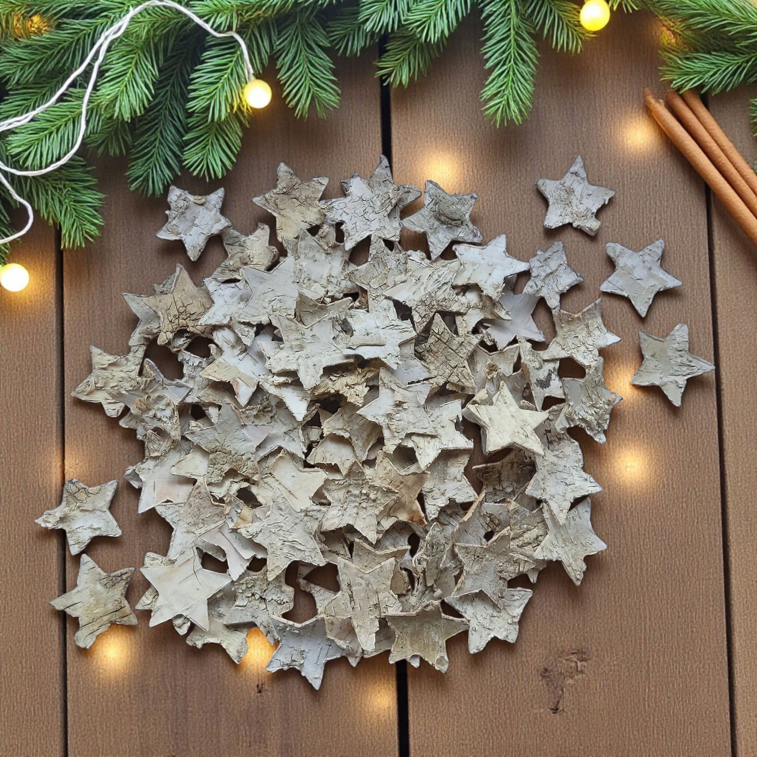 - Набір декоративних зірочок, вирізаних з берести, ідеально підходить для виготовлення віночків і столових прикрас.