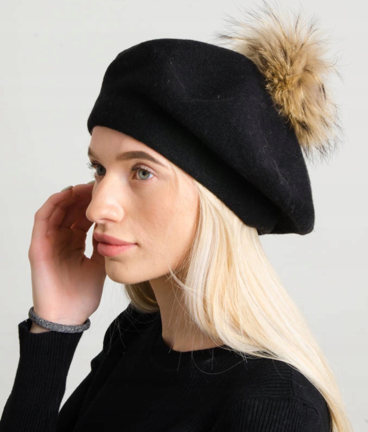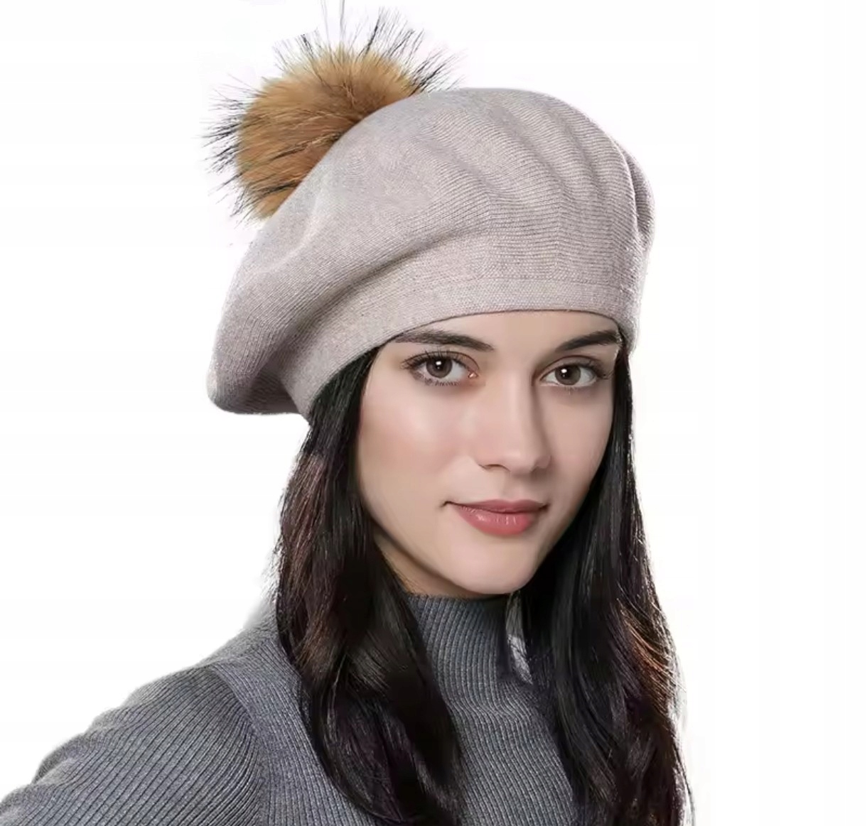 БЕРЕТ POMPON RACCOON натуральний помпон HIT LIGHT BEIGE, шерсть/акрил, UNI