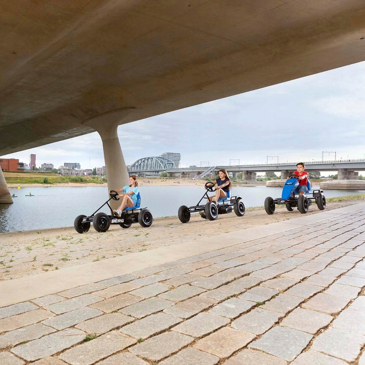 Класична педаль Go -kart, з якого Берг став відомим, був повністю оновлений. Ви ніколи не надто великі в BASIC. Ви можете почати їздити на ньому з п'яти років, і навіть дорослі раді грати з ним. Механізм кульки в елементах управління допомагає вибрати ідеальну водійську доріжку. Навіть на найжорсткіших поворотах міцні пневматичні шини та осі маятника забезпечують адгезію, рівновагу та стабільність. Він також легко справляється з нерівними поверхнями, завдяки якому водіння є безпечним та комфортним. І якщо вам доведеться раптово зупинитися, ви можете скористатися задньою педальною гальмом або просто налити ручний гальмо. Ви любите аеродинамічну структуру? Виберіть чудову модель, з приємним переднім спойлером та задніми крилами, доступною в трьох різних кольорах: синій, жовтий та червоний. Хотіли б ви мати можливість разом їздити на педалі? Червоні, сині або жовті пасажирські крісла будуть ідеальними для вас! Субстрати