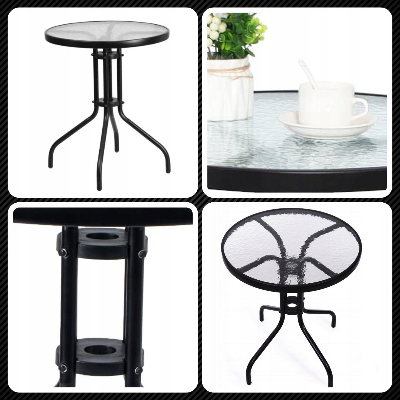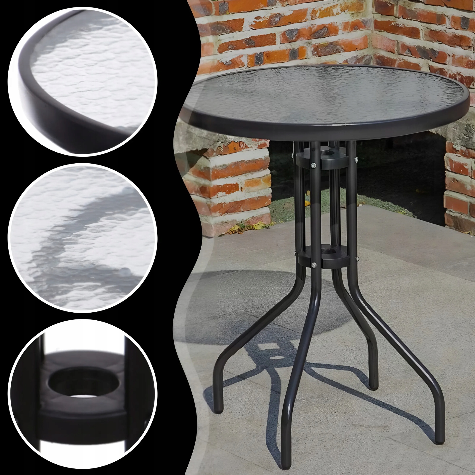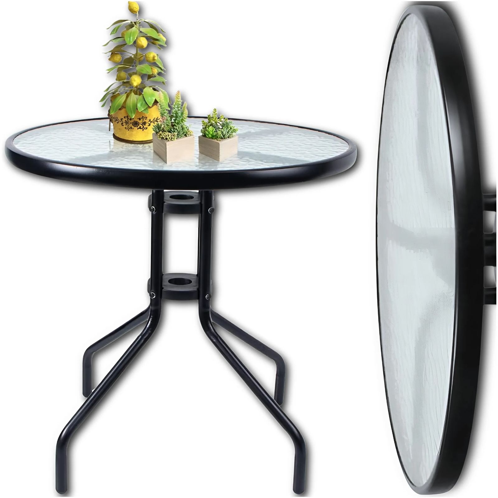 BERGAMO КРУГЛИЙ СТІЛ СКЛО МЕТАЛ САД БАЛКОН КАВА ТЕРАСА FI60