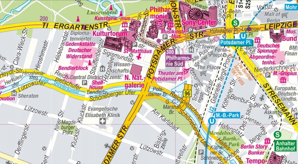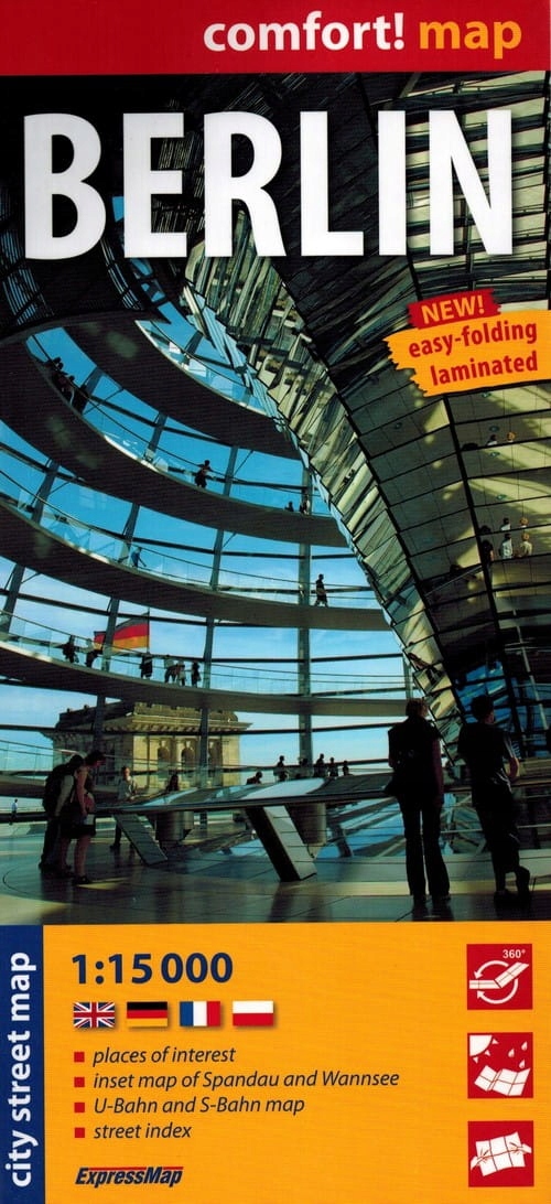 Двостороння ламінована карта центральних районів Берліна, яка легко складається, у масштабі 1:15 000, опублікована ExpressMap.