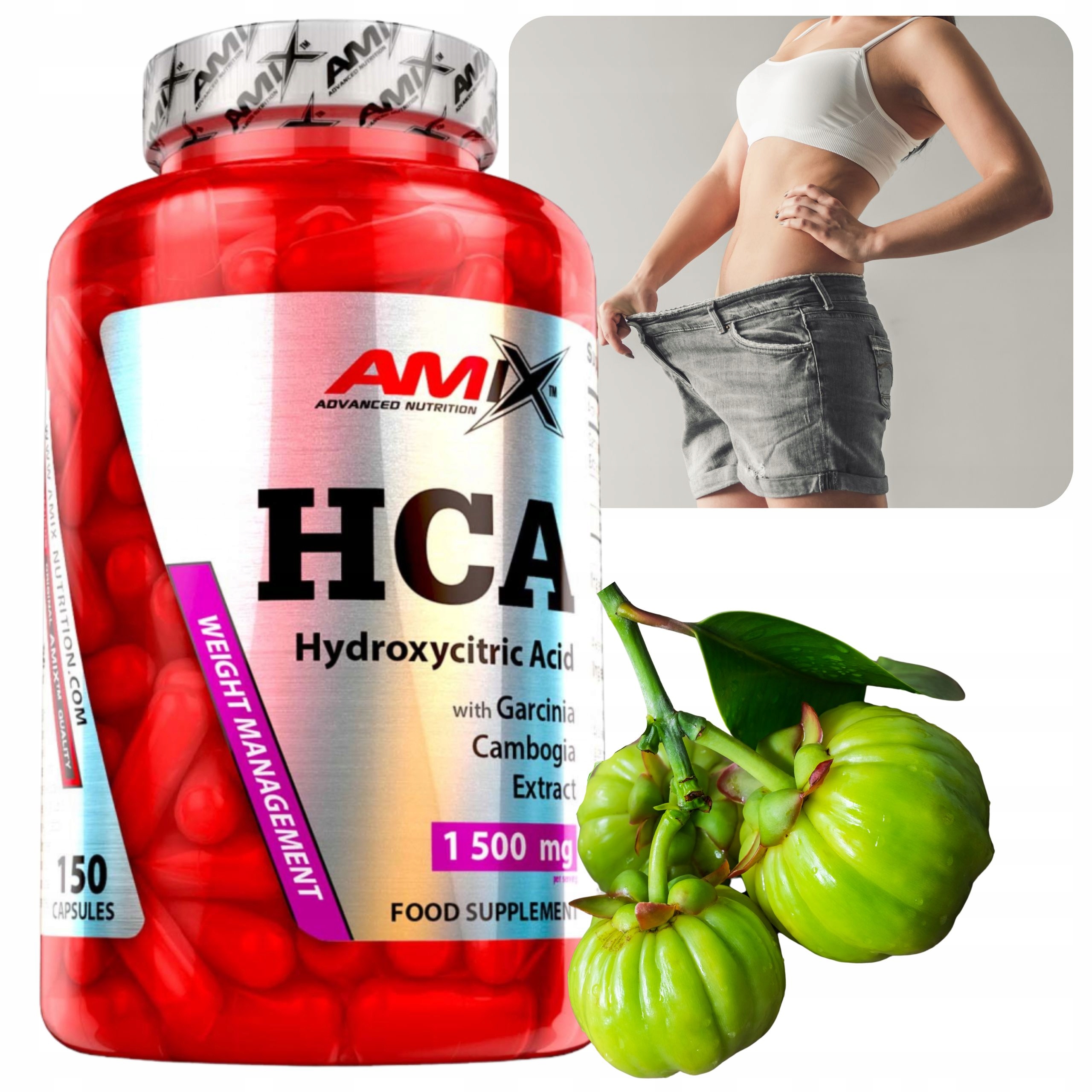Amix HCA - це високоякісна добавка, яка сприяє зниженню маси тіла. Він заснований на екстракті фруктів гарцинії камбоджійської, який стандартизований до 55% гідроксилимонної кислоти (HCA) - ключового інгредієнта, відомого своїми властивостями, що підтримують контроль ваги, метаболізм жиру та апетит.