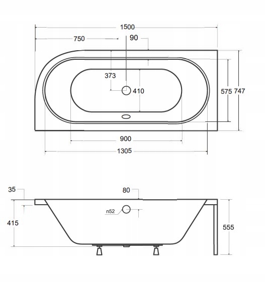 Кутова акрилова ванна BESCO AVITA 150х75 ЛІВА з автоматичним сифоном