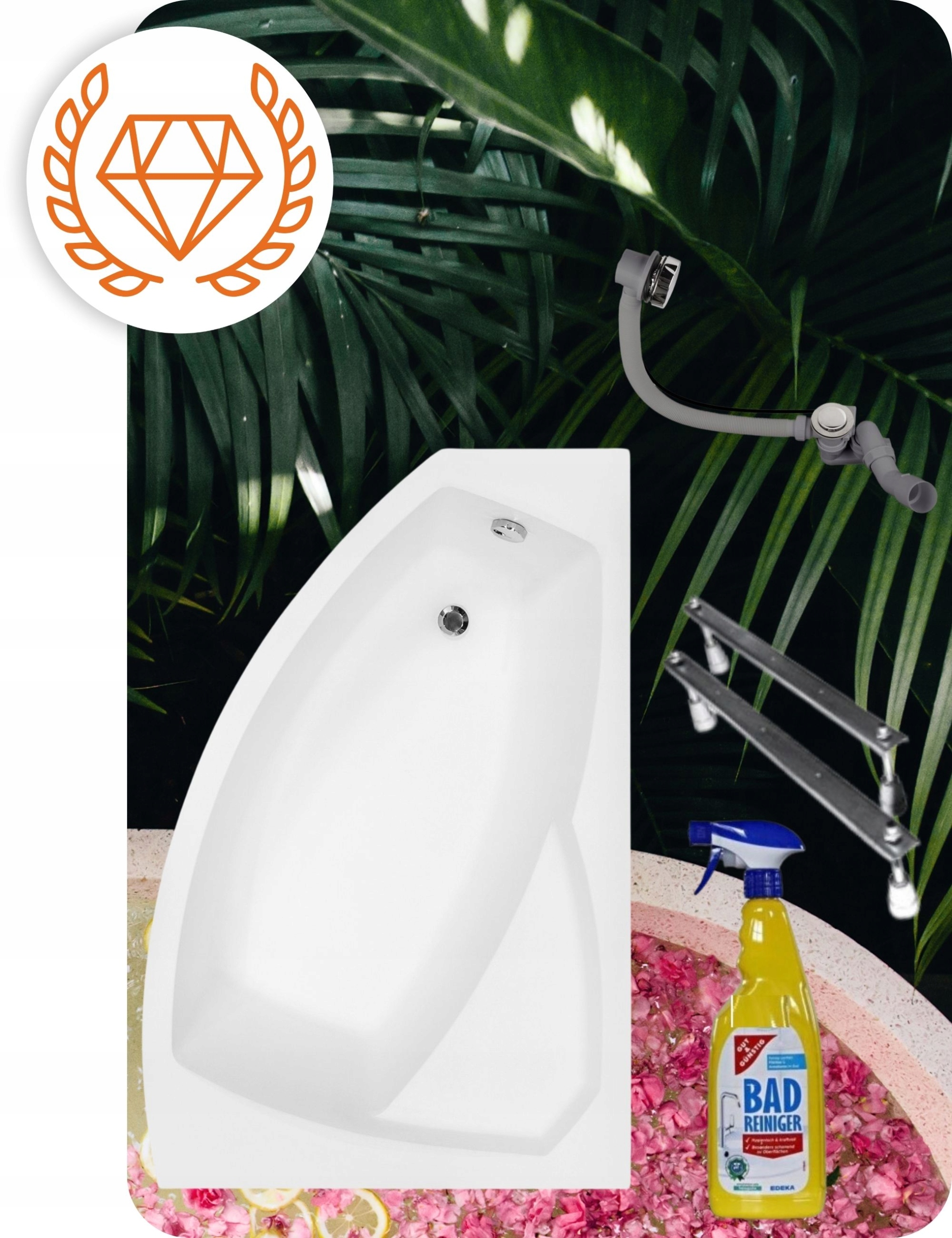 ✨ У комплект входить акрилова ванна, корпус ванни, сифон з автоматичною заглушкою, рама з ніжками та кріплення. ручки та засіб для чищення ванної кімнати