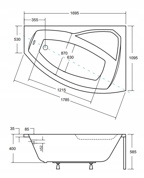 ➡️ Ванни з сантехнічного акрилу характеризуються насамперед ідеально гладкою поверхнею, що робить їх надзвичайно легкими у чистоті. Акрил – це матеріал з чудовими теплоізоляційними властивостями, завдяки яким поверхня ванни довго зберігає температуру води.