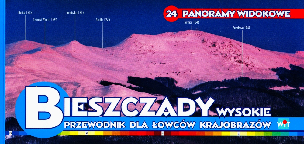 Колекція мальовничих панорам Високих Бещад включає карту з позначеним діапазоном детальних карт і точками, з яких зроблені панорами. У короткому вступі, що характеризує цю найбільш південно-східну гірську групу Карпатського ланцюга, подано карти туристичних стежок, розділених на 3 частини
