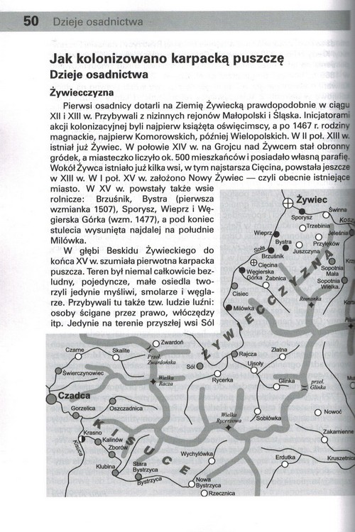 У стислих розділах-есе автори описують геоморфологію , клімат, рослинний світ і тваринний світ Живецького Бескиду та його охорона. Історія цих гір була розглянута більш детально, враховуючи той факт, що протягом 1000 років північні схили належали Короні Польській, а південні схили – Короні Святій. Степан. Уршуля Яніцька-Кшивда розповідала про горян, їхню матеріальну і духовну культуру та господарську діяльність, а Войцех В. Вишневський веде нас до «ям» і «льохів», якими багато в цих горах.