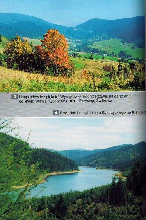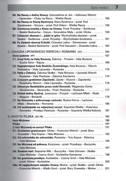 Основна частина путівник описи, туристична інформація окремих гірських груп Живецьких Бескидів та словник місцевостей. До згаданих груп гір належать: група Великої Рачі (польська та словацька сторони), гніздо Липовський Верх та Романка, гірський масив Пільско (польська та словацька сторони), пагорби над Єлешнею та Живцем, група Мєдралова, Яловецький хребет, масив Баб'я Гора, хребти Поліца та хребти Подгале.