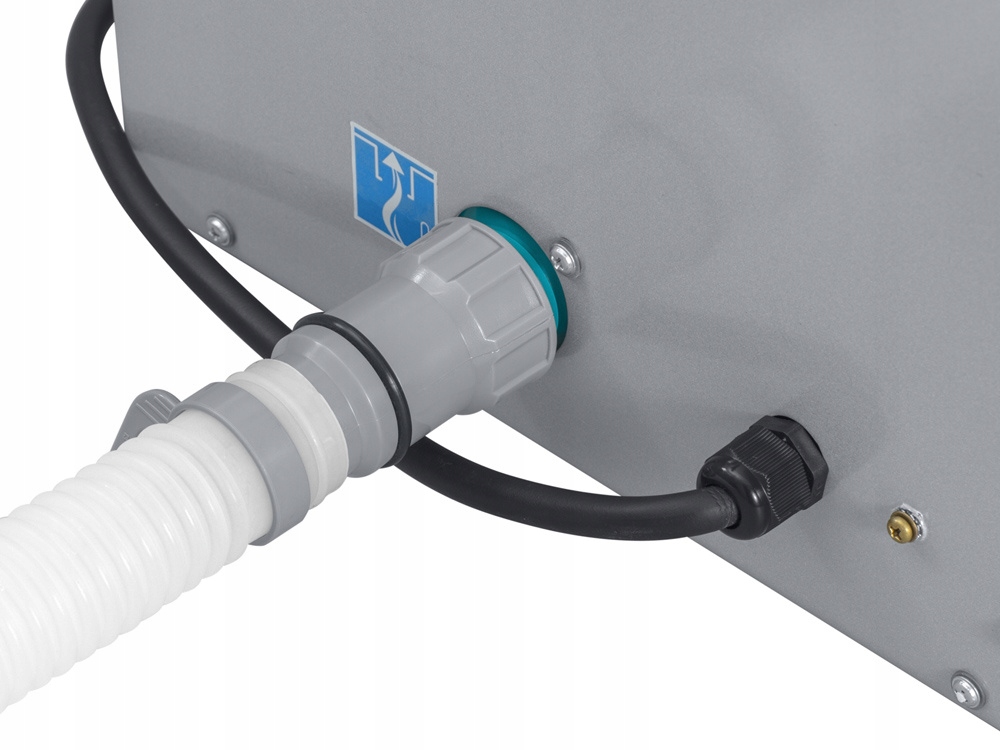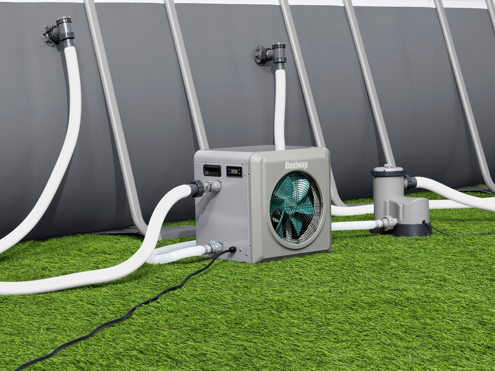 Нагрівач електричного басейну має два війська змії , один з яких з'єднує його з насосом фільтру, а другий з наземним басейном.