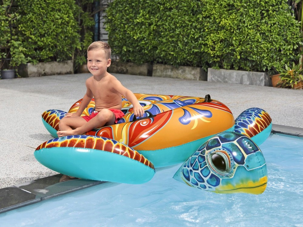 Насолоджуйтесь незабутніми моментами, проведеними над водою з унікальним надувним матрацом у формі черепахи з Бествей! Це ідеальний вибір для літніх днів, пропонуючи розваги та розслабляючі як для дітей, так і для дорослих. Завдяки привабливому появі у формі черепахи та барвистого друку majolik , матрац стає справжньою атракціоном на пляжі, в озері чи басейні. Завдяки ручках під рукою та легкої конструкції це надзвичайно просто у використанні та забезпечує комфорт навіть у довгі години води. Матеріал: PVC