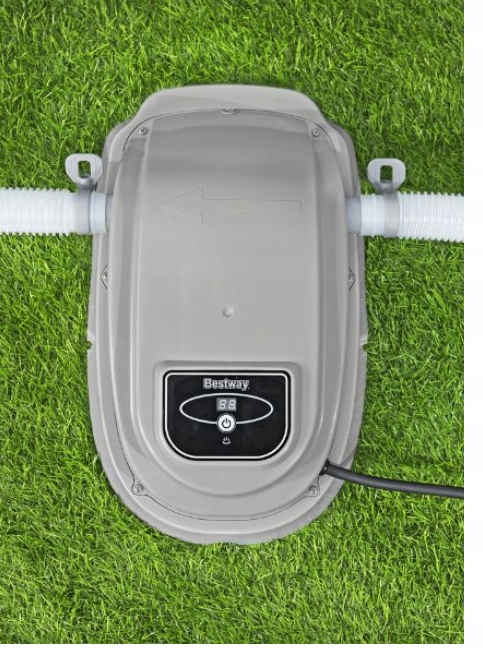 Електричний нагрівач Bestway має два входи для шланга: один з’єднує його з фільтруючим насосом, інший – з басейном.