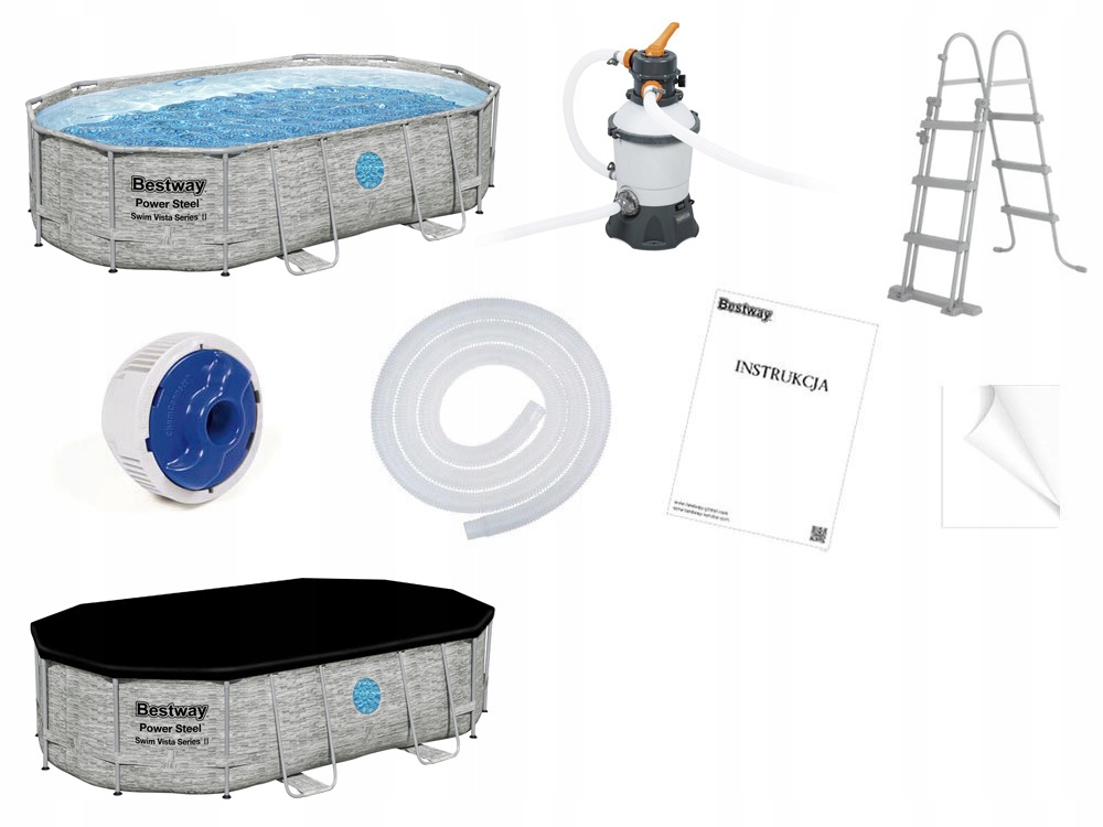рамка басейну, виготовлена з металевої дощової конструкції та змінних погодних умов. Крім того, він оснащений системою ущільнення та блокування ™ для безпечного з'єднання труб. Три -шлейф -стрічка забезпечує додаткову бічну підтримку.