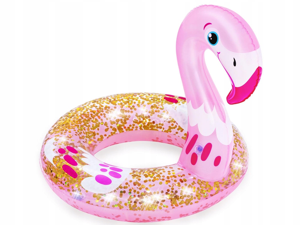 Чарівне, стильне кільце для плавання Shimmer N' Float™ - це пропозиція Bestway для відпочинку у воді. Круг у формі рожевого фламінго наповнений глітером, який переливається і переливається на літньому сонці та привертає увагу всіх відпочиваючих.