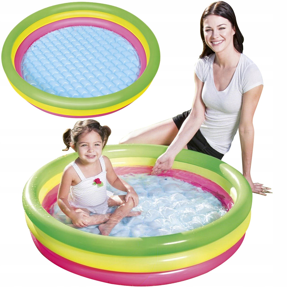 Надувний басейн з водою - ідеальне рішення для найменших у спекотні літні дні. Виріб легко надувати і доглядати. Басейн дозволить вам познайомити та познайомити дитину з водою. Його дуже легко розкласти і надути, а догляд за ним надзвичайно простий. Триколірний мотив зацікавить малюка виробом і зробить гру з ним ще приємнішою, а м'яке дно забезпечить комфортну гру. Завдяки невеликому розміру душовий піддон поміститься як на пляжі, так і в саду, на терасі та балконі. Продукт призначений для дітей від двох років. Три окремі камери у формі кільця та спеціальний повітряний клапан забезпечують додатковий захист від витоку повітря.