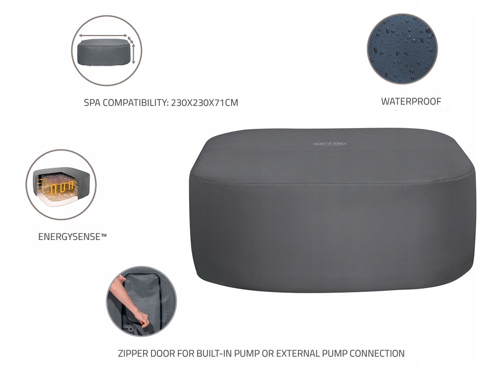 Technical data: H2> - Compatible with a square SPA with dimensions of 230 x 230 x 71 cm