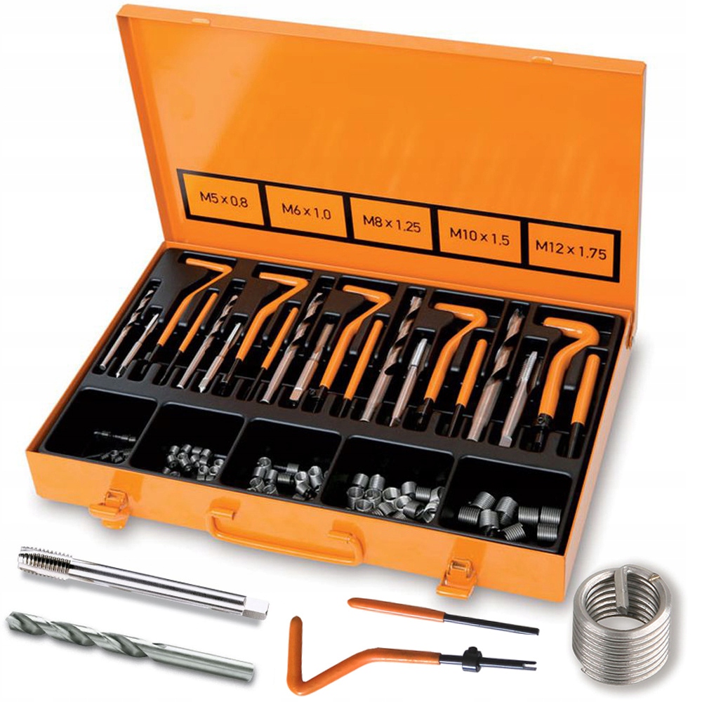 Набір для ремонту пошкодженої різьби внутрішніх розеток M5-M6-M8-M10-M12 зі спіральними вставками в металевій коробці BETA 437U/09.