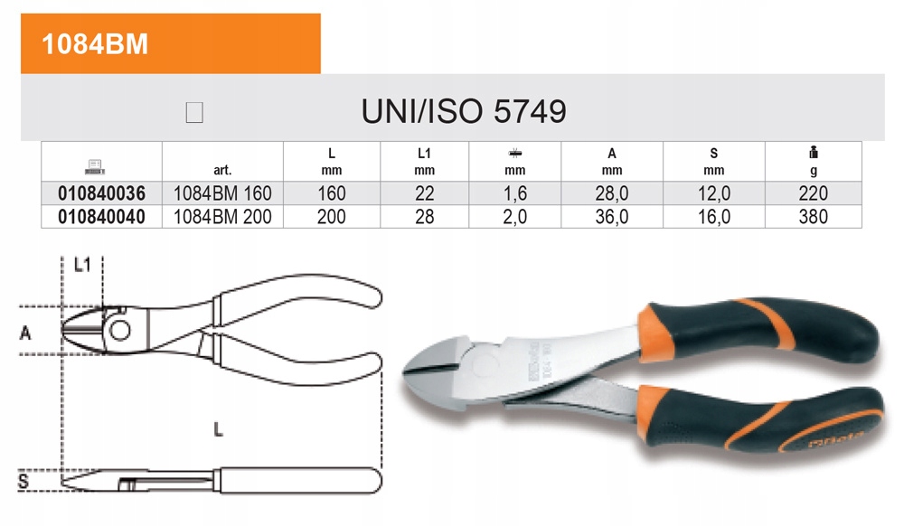 Бічні кусачки, посилені, композитні ручки з двох матеріалів BETA 1084BM/160