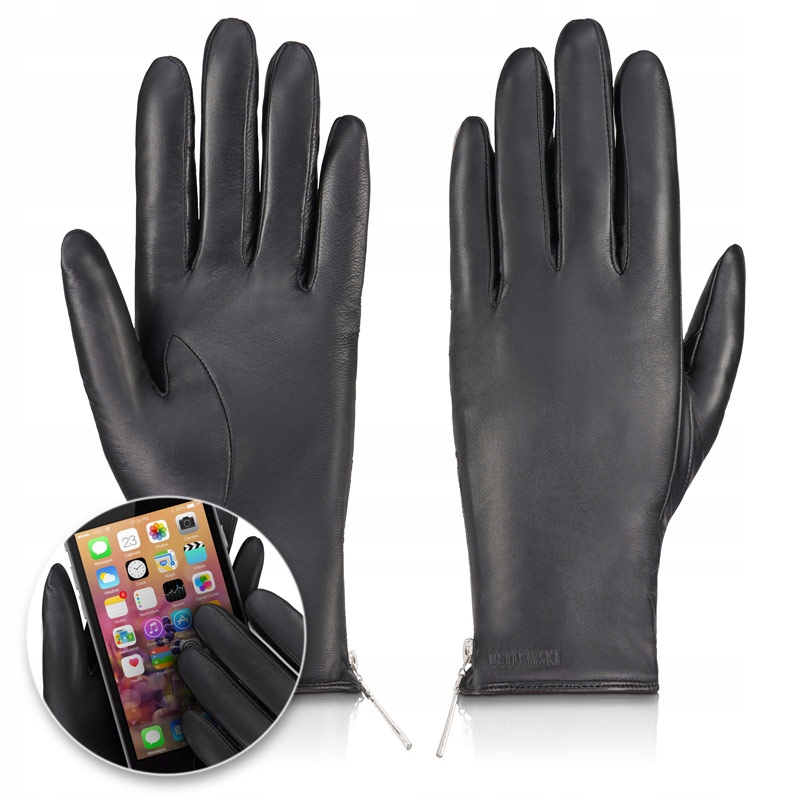 Класичні чорні жіночі рукавички - зимовий аксесуар, без якого не обійтися! Вони ідеально підійдуть до елегантного вбрання - їх можна носити з вовняним пальто, елегантним тренчем або піджаком. Виготовлені з гладкої, злегка блискучої, натуральної овчини. Він м'який - рукавички з нього ідеально адаптуються до форми руки користувача, забезпечуючи користувачеві комфорт при носінні. Вони застібаються на зручну та міцну сріблясту блискавку, розташовану збоку від зап’ястя.