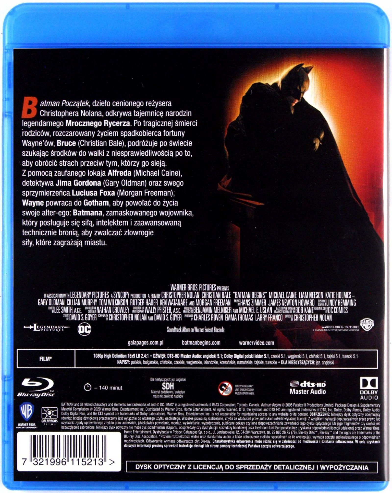 Бетмен: Початок, робота відомого режисера Крістофера Нояна, розкриває таємницю народження легендарного Темного лицаря. Після трагічної смерті своїх батьків спадкоємець стану Вейнів Брюс (Крістіан Бейл), розчарований життям, мандрує світом, шукаючи шляхів боротьби з несправедливістю, щоб звернути страх проти тих, хто її поширює. За допомогою свого довіреного дворецького Альфреда (Майкл Кейн), детектива Джима Гордона (Гері Олдман) і свого союзника Люціуса Фокса (Морган Фрімен) Вейн повертається до Ґотема, щоб оживити своє альтер-его: Бетмена, воїна в масці, який використовує силу, інтелект і передову зброю для боротьби зі зловісними силами, які загрожують місту.