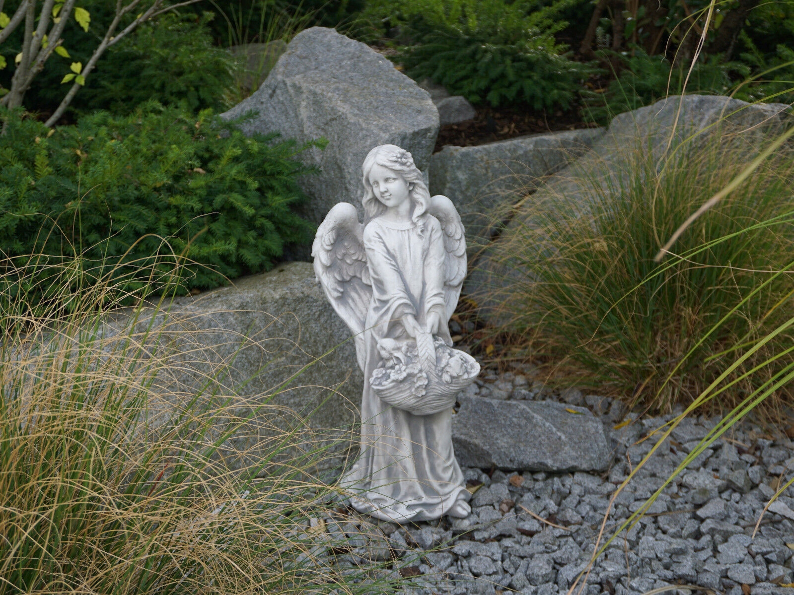 Бетонна фігура Ангел із фігурою квіткового кошика для пам'ятника ангела з бетону