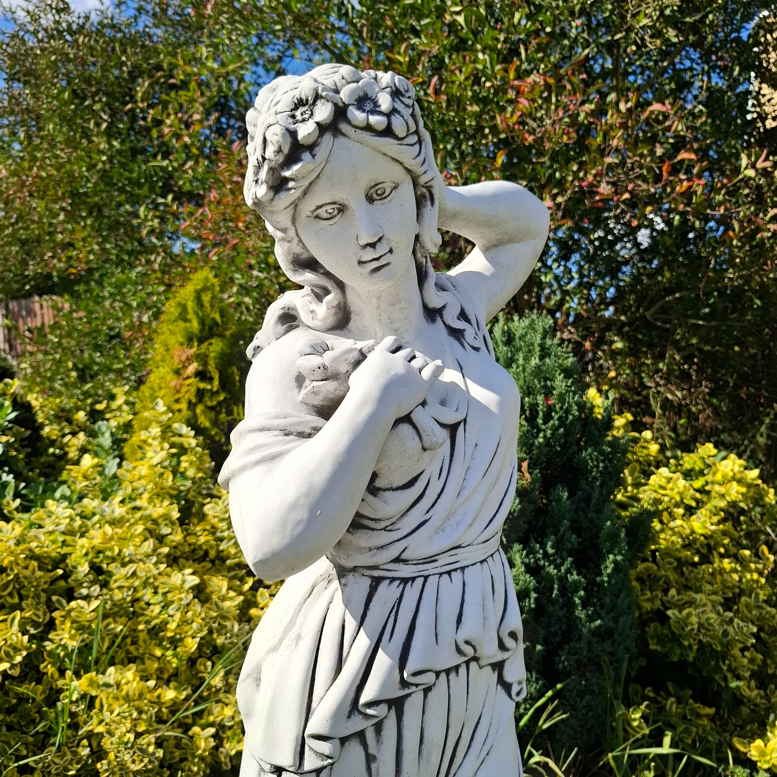 Бетонна фігура жінки з квітами у волоссі. Скульптура жінки