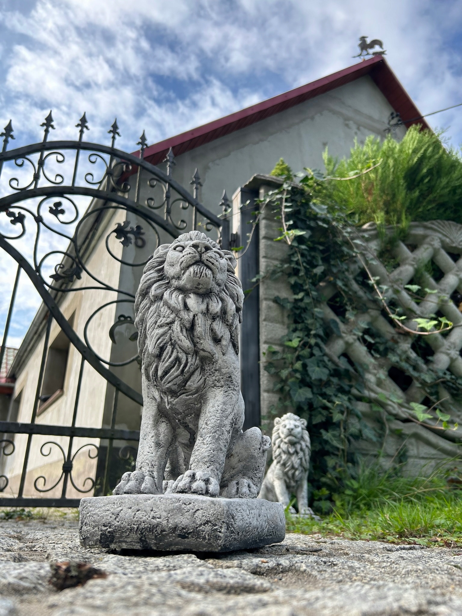 Прекрасна скульптура з високоякісного бетону, спеціально підготовленого для виготовлення бетонних фігур, стійка до погодних умов і ідеально пофарбована, щоб підкреслити якомога більше деталей лева.