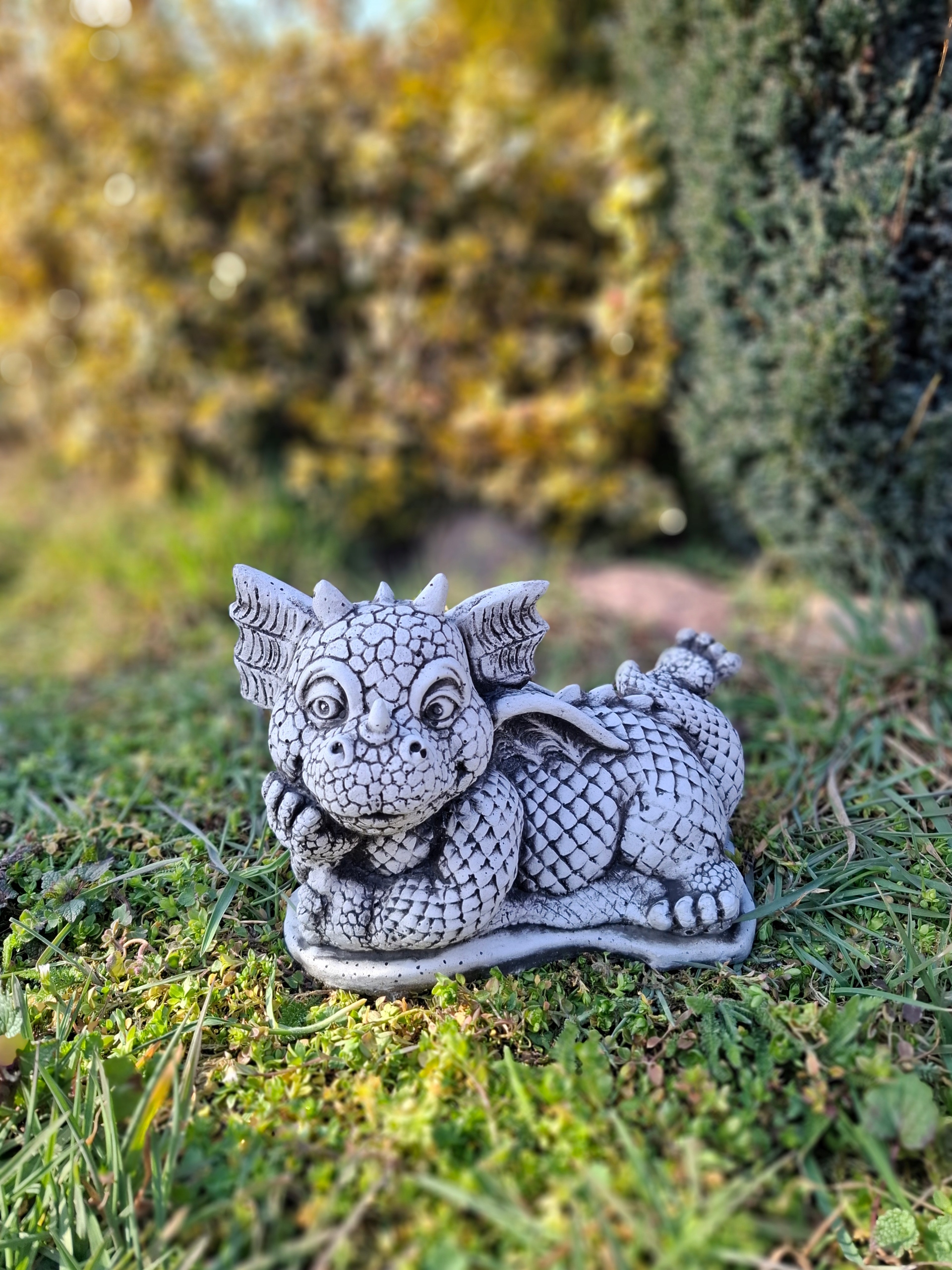 Бетонна фігурка дракона. Лежачий садовий декор, соска, фігурка дракона