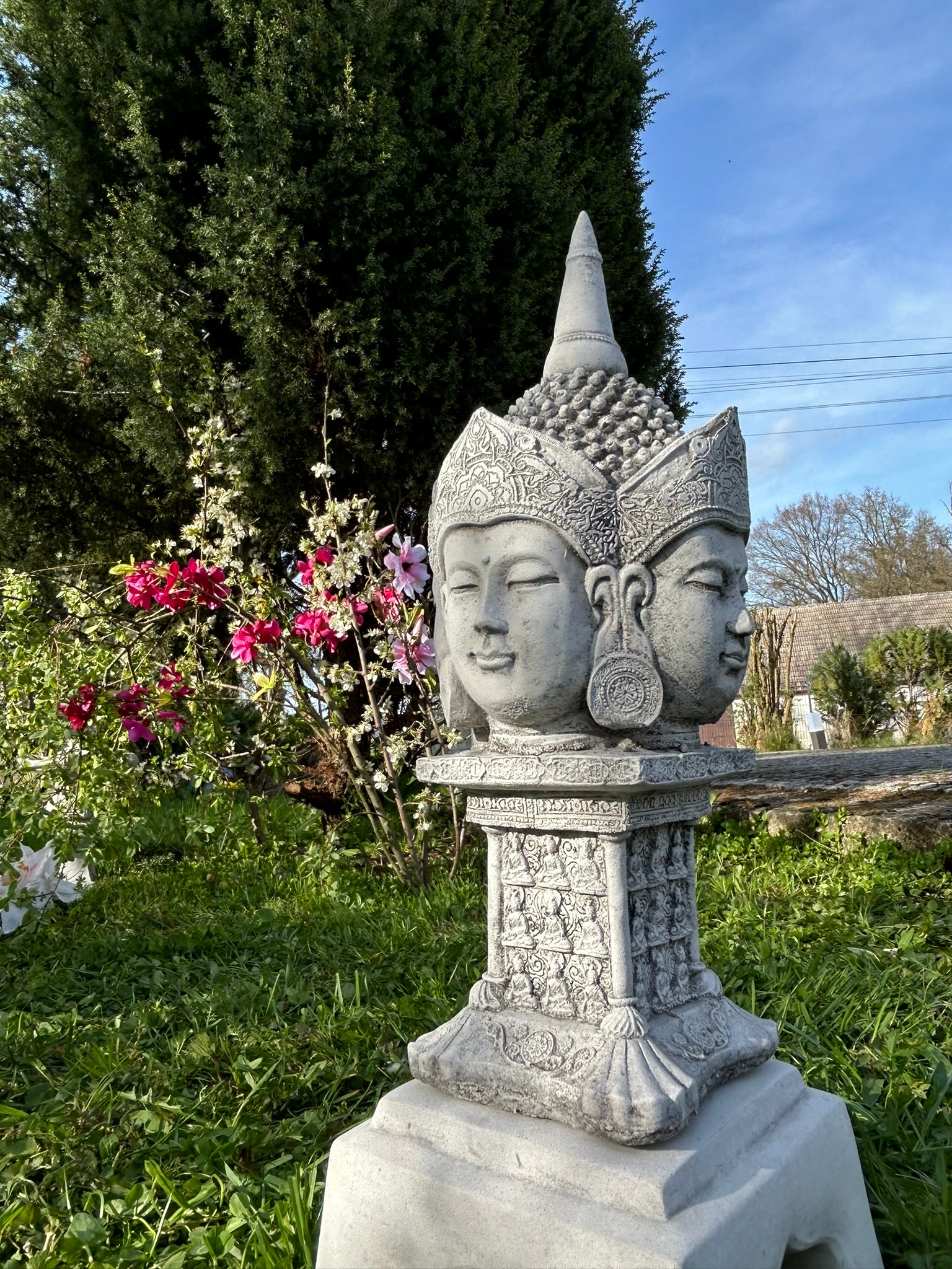 - Унікальний дизайн із чотирма обличчями: фігурка Будди FABRIQ Viergesichtiger зображує Будду з чотирма обличчями, що робить її унікальним і цікавим декоративним елементом. Цей оригінальний дизайн символізує різноманітність та універсальність, вносячи атмосферу спокою та духовності у ваш сад.