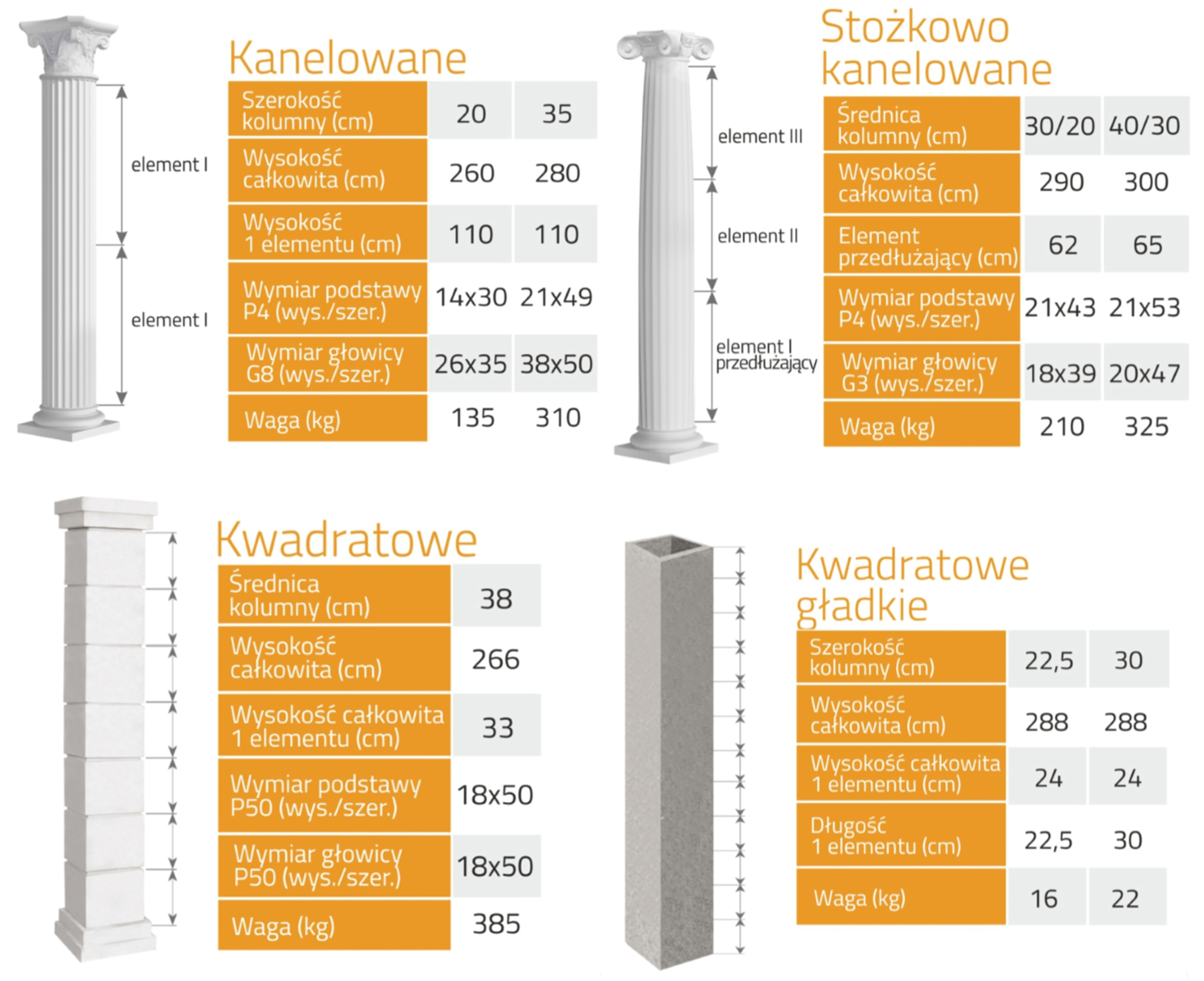 Стовпи, які ми виготовляємо, виготовлені з бетону високого класу міцності C35/C45. Суміш створена з урахуванням всіх вимог довговічності, пов'язаних з подальшим використанням, таких як: міцність, морозостійкість, водопоглинання бетону.
