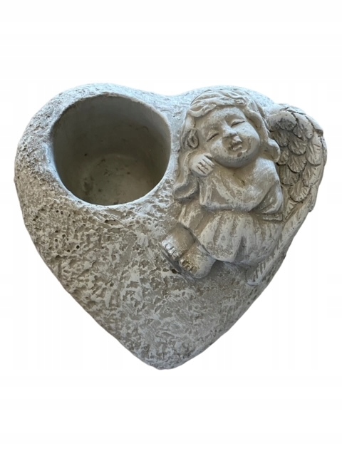 Надзвичайно Клерікальна обкладинка У формі сердець із сплячим ангелом може становити основу для створення флористичної композиції або становити прикраси сам по собі. Важкий, що робить дуже стабільним підходить для прикраси як всередині, так і зовні. Захищений пінопластами, захищає землю від подряпин.