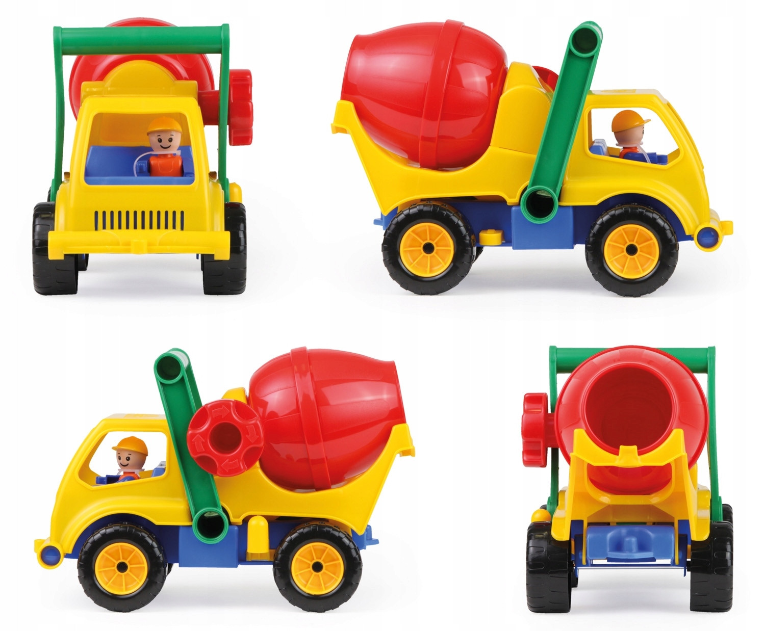Барвиста бетономішалка, довжиною 27 см, виготовлена з гнучкого високоякісного пластику, що відповідає європейським стандартам. Функціональний автомобіль, барабан можна обертати та нахиляти, щоб, наприклад, висипати пісок.