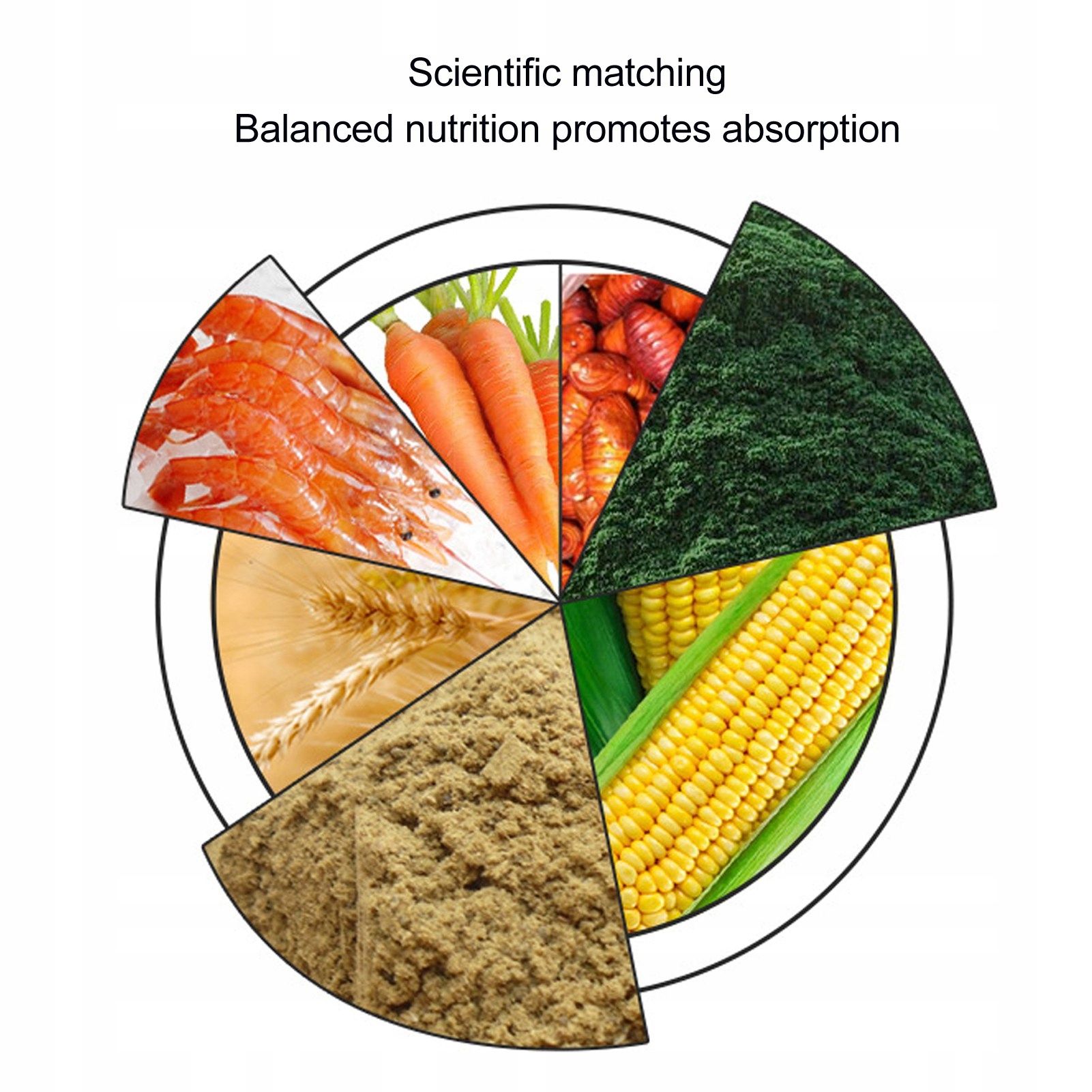 - Склад: рибне борошно, креветне борошно, кальмаційне борошно, екстракт дріжджів, фосфоліпіди сої, риб’ячий жир, вітаміни та подібні вітаміни Колір