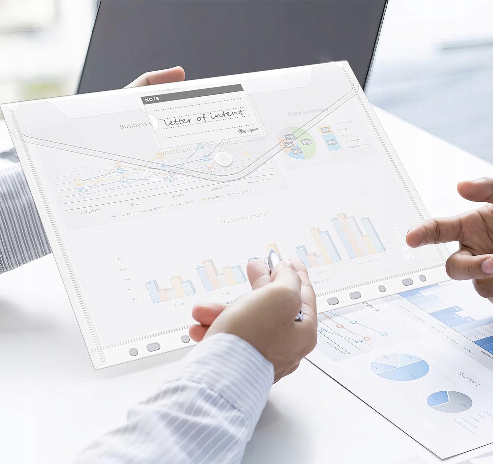 【Комфорт】Просто та стильно. Лицьова частина сумки забезпечує зручну класифікацію документів, що полегшує їх пошук, не відкриваючи конверти.