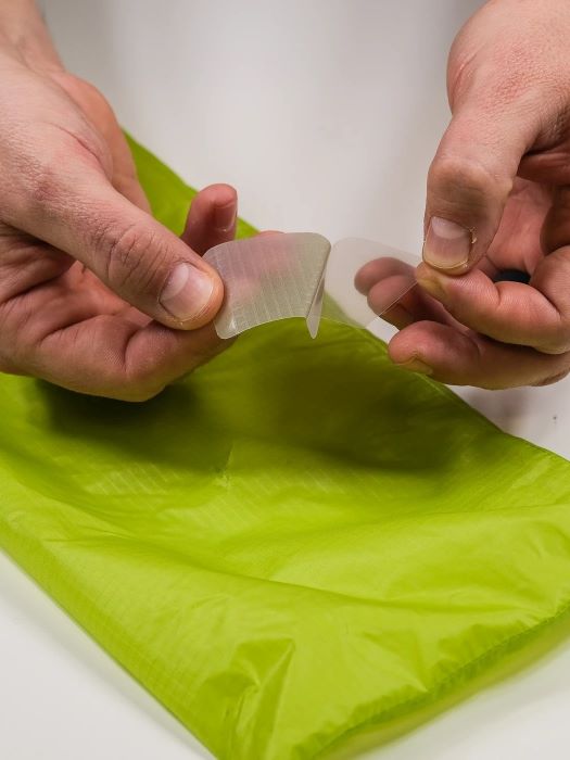 Нашивки можна використовувати для будь-якої просоченої силіконом поверхні, що забезпечує довговічність і гнучкість відремонтованої ділянки. Вони виготовлені з міцного силіконізованого нейлону ripstop 40D і покриті силіконовим клеєм. Просто зніміть захист із зворотного боку пластиру та притисніть його до відремонтованої ділянки. Завдяки матовому покриттю стрічка майже непомітна, тому не потрібно підбирати кольори на тканині та інших матеріалах. Пластир SilNylon водонепроникний і його можна прати в пральній машині. Він багатофункціональний, завдяки йому можна ремонтувати, серед іншого: намети, брезенти, гамаки, спальні мішки, самонадувні килимки, рюкзаки або сухі сумки
