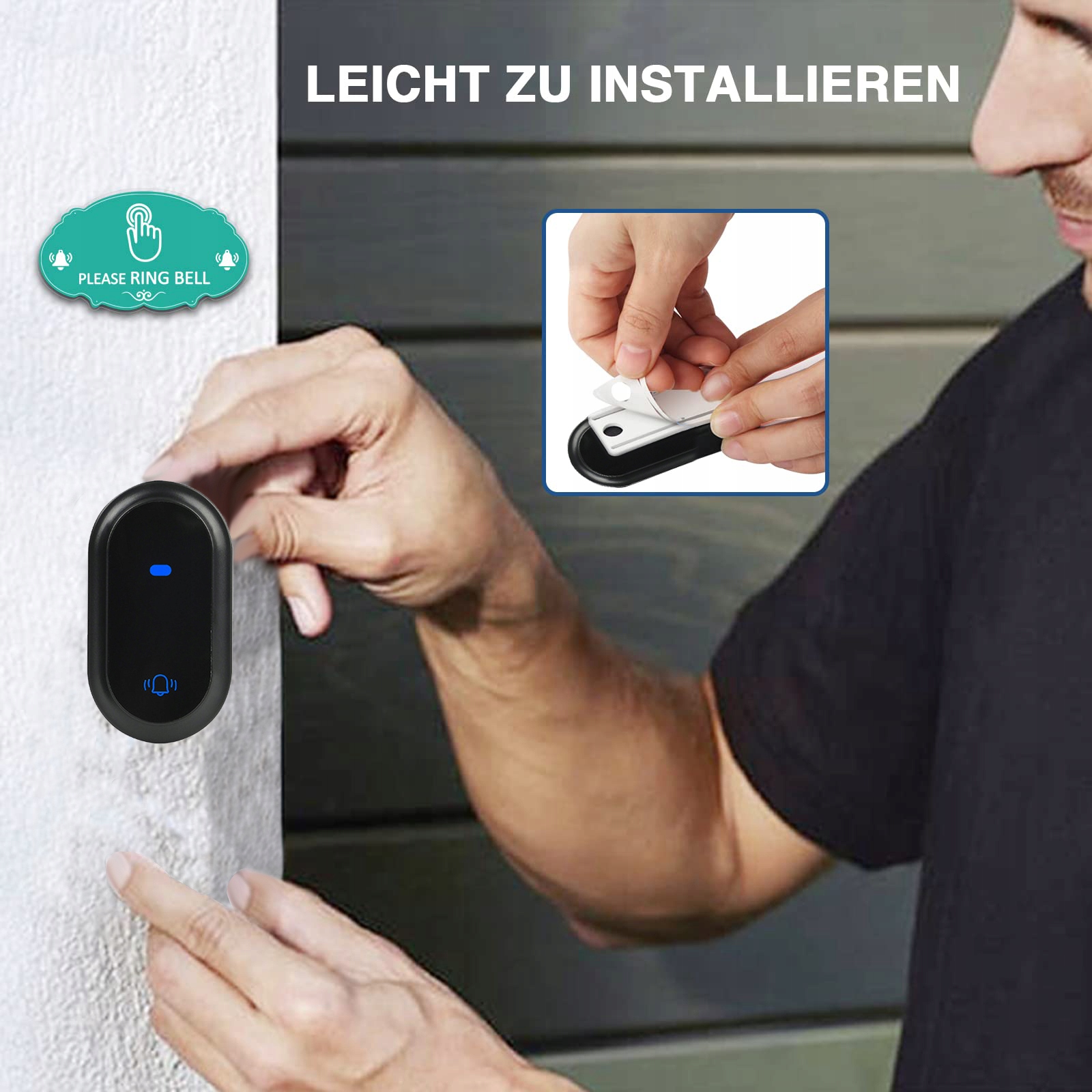 - Чорний бездротовий дверний дзвінок