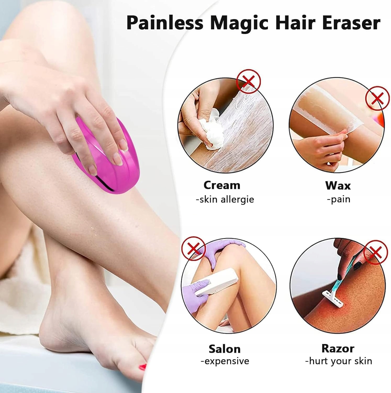 Відкрийте для себе інноваційний спосіб гладкої шкіри без болю та подразнень! Painless Magic Hair Eraser - це сучасний кристалічний епілятор, який дозволить вам швидко, просто і безболісно видалити небажане волосся.