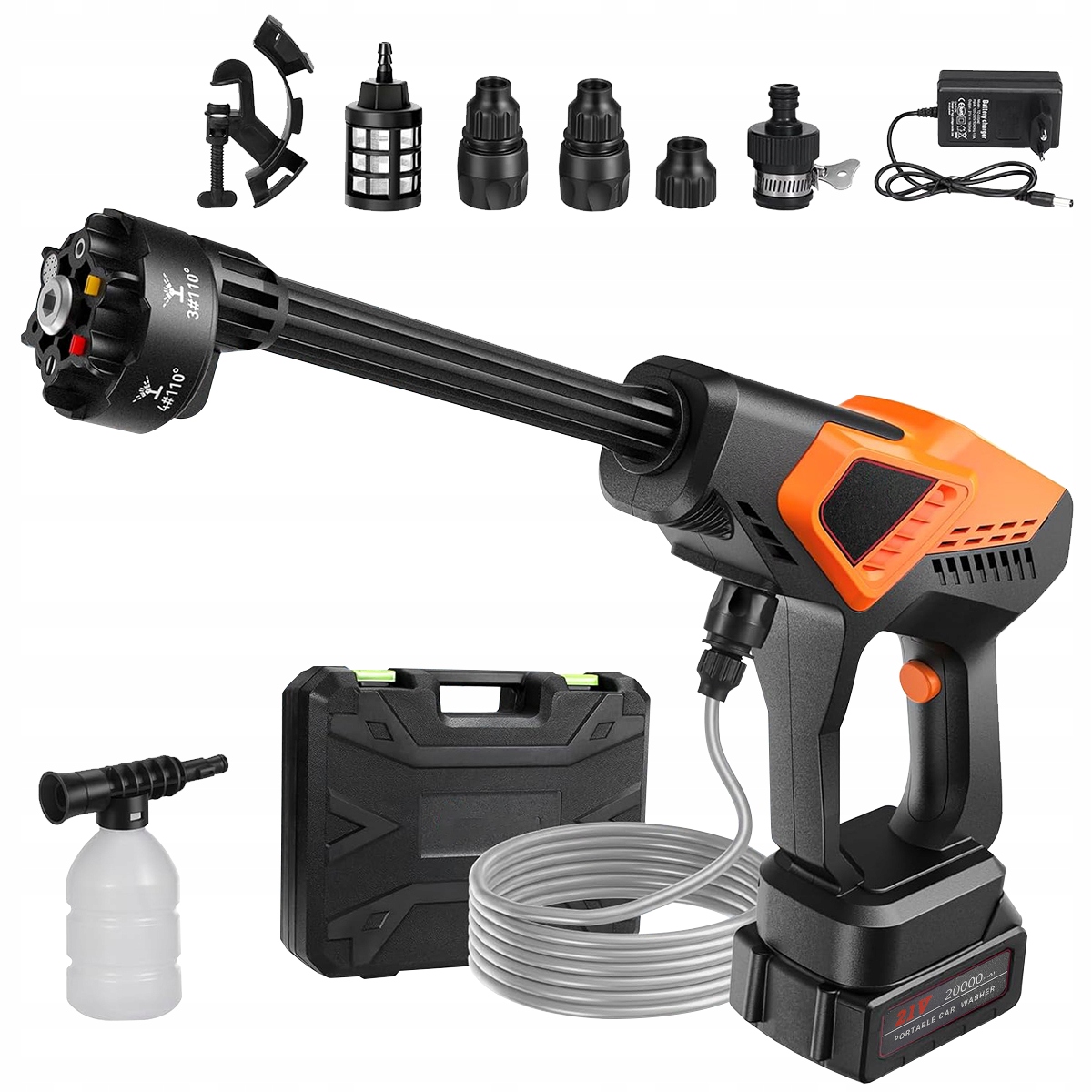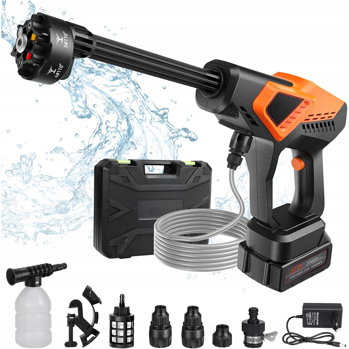 Акумулятор шайби з високим вмістом тиску, мобільний тиск акумуляторного шайби 150 бар -безщасливий двигун з батареєю на 20 000 мАг для автомобіля, тераси, вікон, саду поливу (чорний -orange)