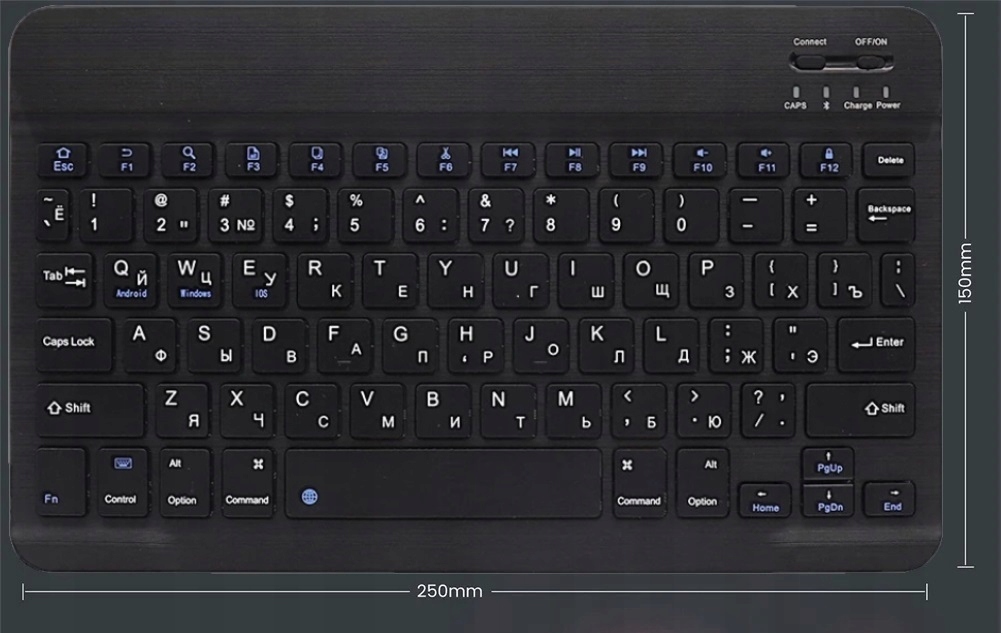 - Можливість роботи на значній відстані від пристрою: Завдяки використанню новітнього модуля Bluetooth дальність дії клавіатура становить приблизно 10 м