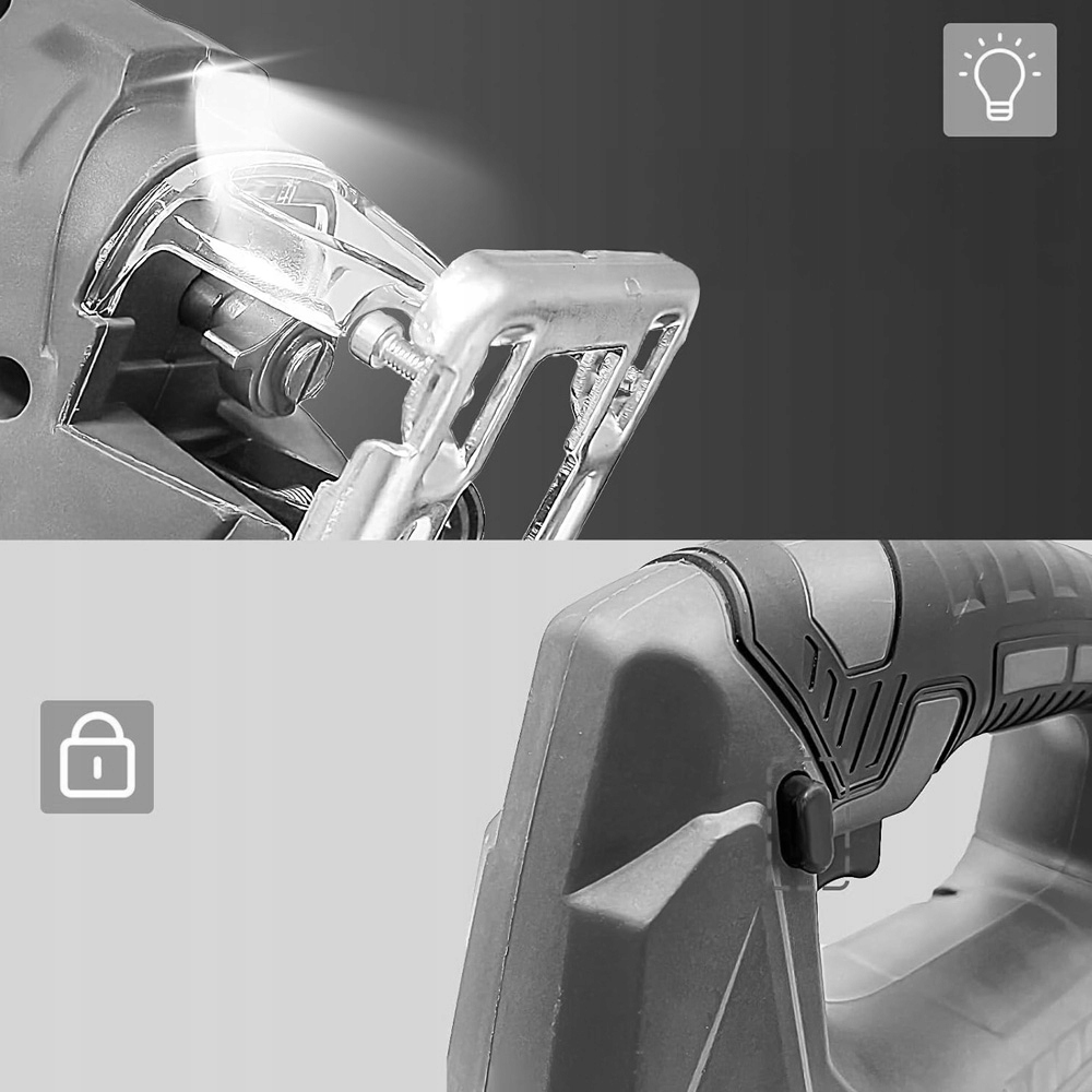 , оснащений міцним, повністю металевим двигуном, машина забезпечує високу потужність, завдяки якому металу, дерева та пластмасу легко вирізати.