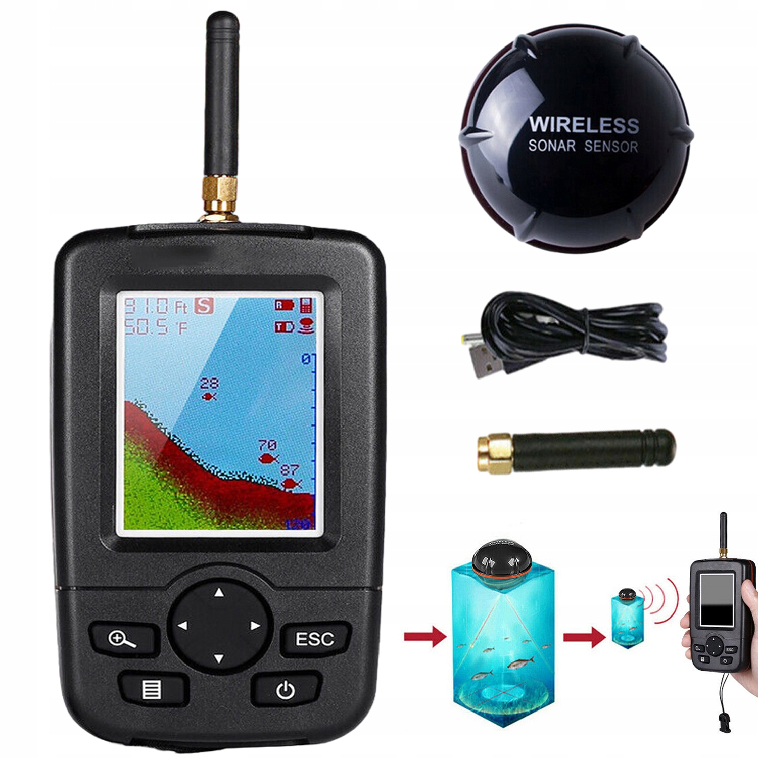 📦1 * бездротова ехосонда (вбудований -in 300mah акумулятор)