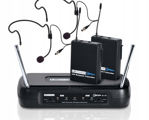 1-канальна бездротова система Diversity UHF PLL із двома мікрофонами гарнітури
