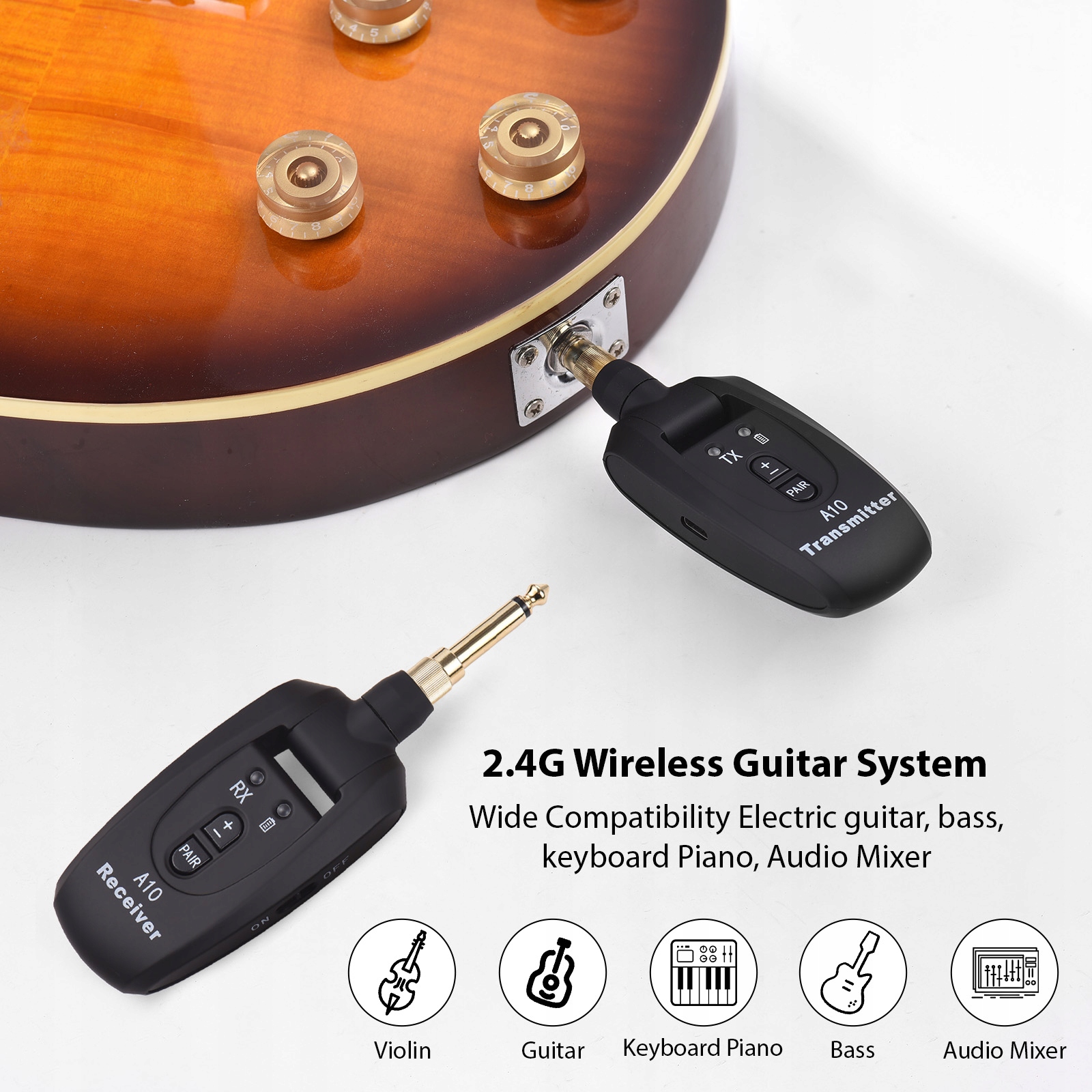 Передача бездротової гітарної системи в режимі реального часу 2.4g передавач гітарного приймача ультра-ніскі для електричного гітарного електричного вітрового інструменту вітру, завантажуючи 280 градусів, що обертається з 2 6.