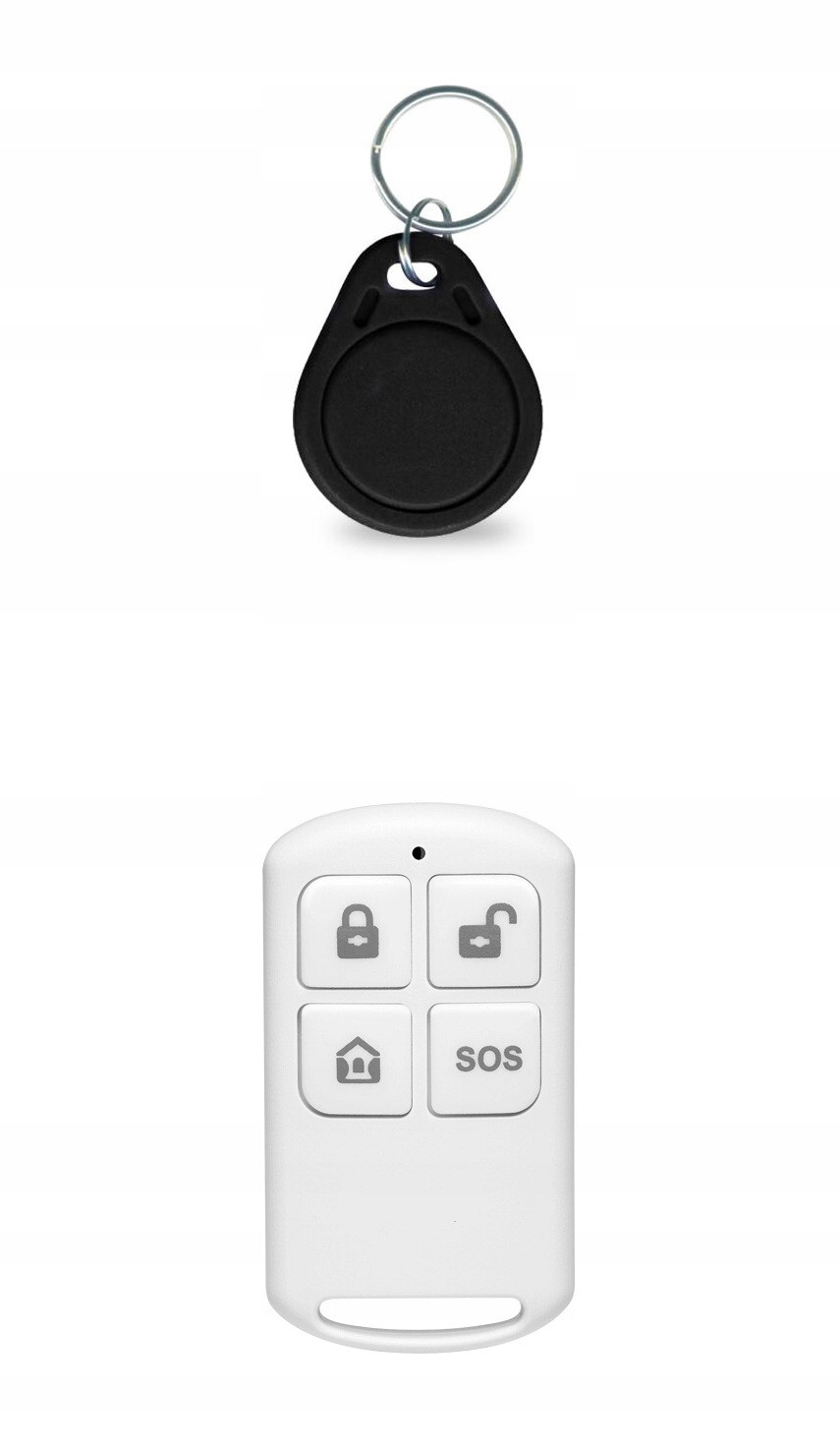 Дозволяє комфортне дистанційне керування сигналізацією. Пульт дистанційного керування оснащений кнопками для постановки під охорону, зняття з охорони, часткової постановки під охорону (лише зовнішні зони) та активації функції захисту від атаки SOS.