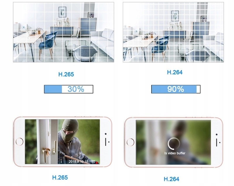 Високоякісне стиснення H.265 займає лише 30% швидкості запису та місця на диску. Відео відтворюється плавно та високої якості!