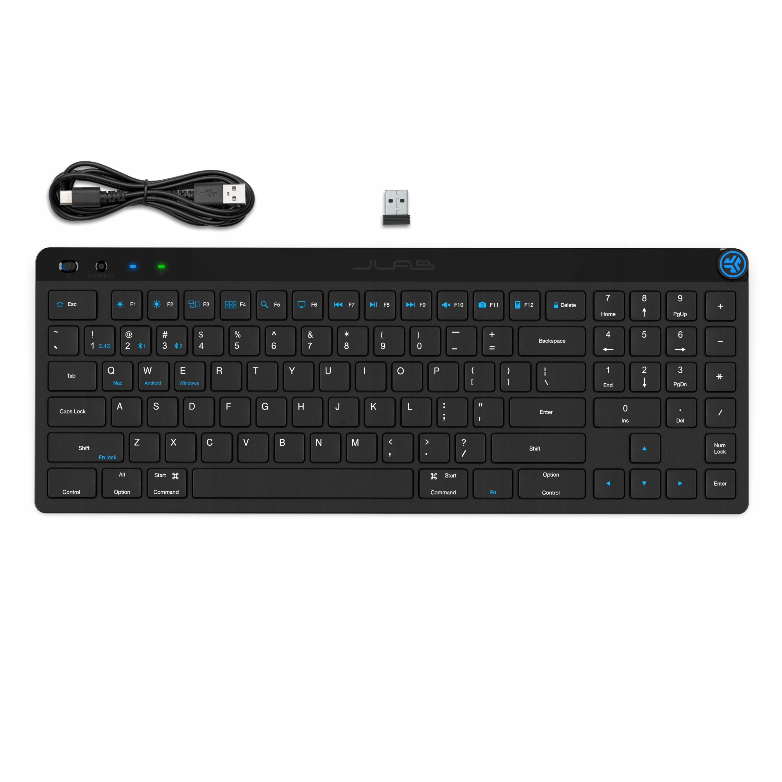 клавіатура JBUDS від JLAB ви можете підключитися до трьох збережених пристроїв. Більше того, з'єднання та перемикання між пристроями майже автоматично - вам не потрібно встановлювати додаткові драйвери. Ви будете з’єднати пристрої за допомогою адаптера Bluetooth або USB 2,4 ГГц, прикріплених до клавіатури. Забезпечити багатозадачність у будь -який час роботи. Клавіатура JBUDS сумісна з усіма системами, доступними на ринку. Клавіші: (наприклад,
