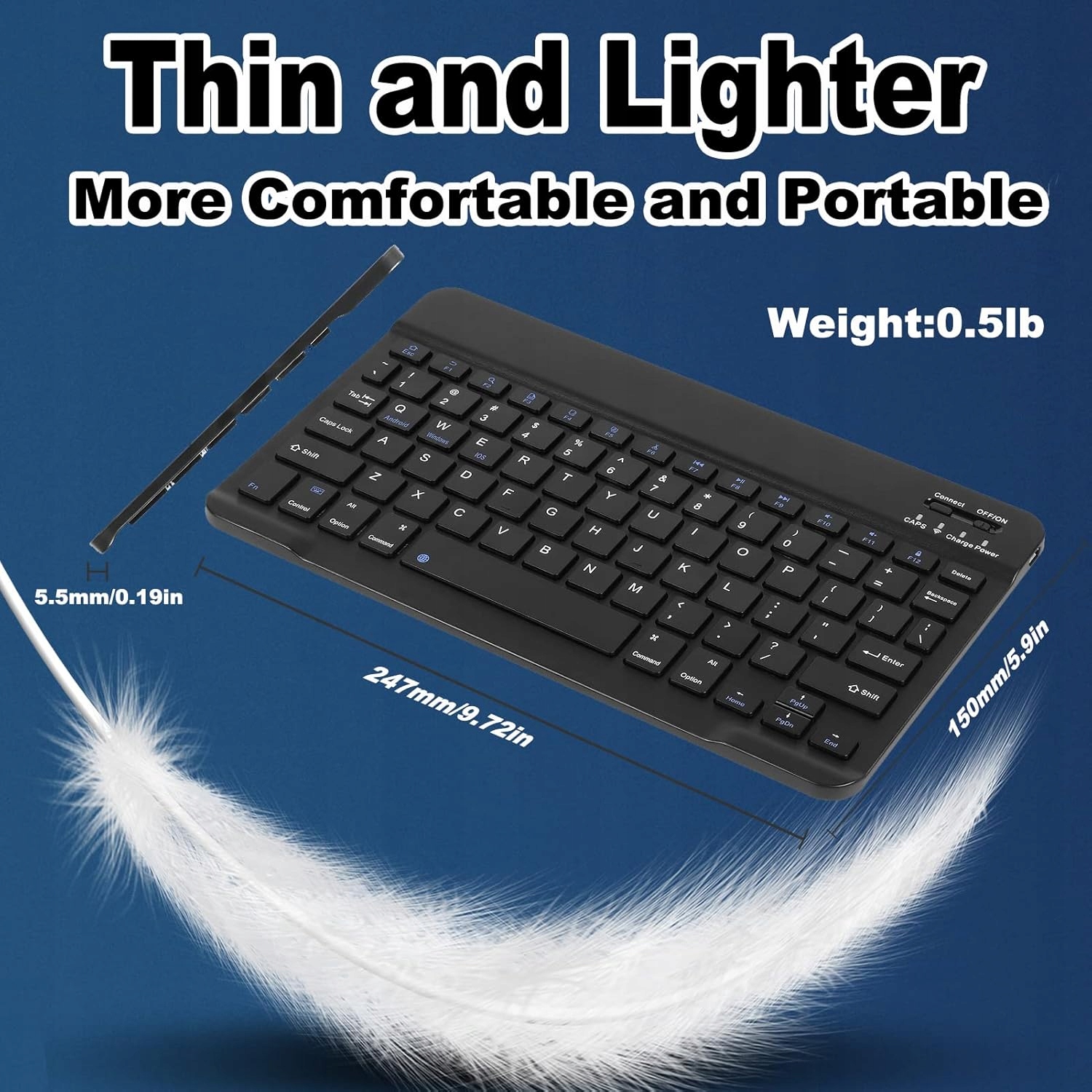 бездротова клавіатура характеризується операцією та зарядкою енергії, що дозволяє до 150 годин безперервної роботи та 60 днів у режимі очікування після 2 годин зарядки. Надзвичайно Світла та ультра -тонка виготовлення , вагою лише 225 г, полегшує транспорт. Ідеально підходить для різноманітних умов, з водостійким корпусом та його розмірами (клавіатура: 247 х 150 х 5 мм; миша: 110 х 58 х 28 мм) дозволяють легко сховатися в сумці. Крім того, миша з регулювання DPI пропонує три налаштування (800/1200/1600), що забезпечує максимальну точність та комфорт під час щоденного письма.