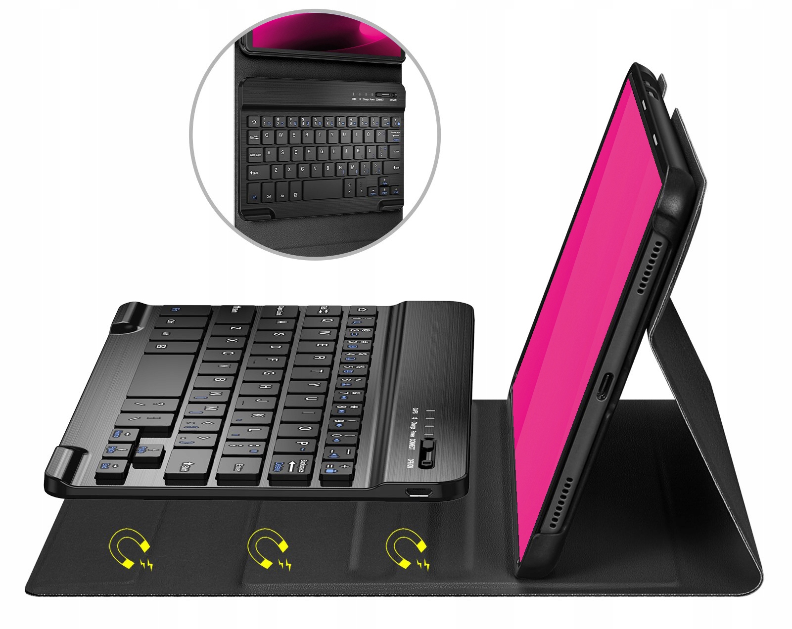 - Чохол має вбудований магніт, який з'єднує клавіатуру з корпусом. Клавіатуру можна від’єднати від чохла та працювати на більшій відстані від планшета.